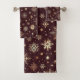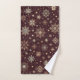 Un diseño lujoso con temática invernal, con una cascada de intrincados copos de nieve dorados que se estremecen contra un rico telón de fondo oscuro. Este elegante patrón evoca la magia festiva de la temporada, perfecta para añadir un toque de sofisticación y alegría navideña.