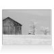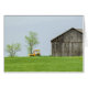 Un granero rústico y un viejo tractor resaltan esta imagen austera pero agradable.