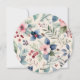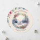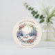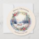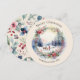 Comparte alegría navideña con esta hermosa tarjeta de Navidad ilustrada que presenta una escena invernal clásica en estilo acuarela. El diseño estacional atemporal es ideal para enviar cálidos deseos navideños a familiares y amigos. El saludo 'Feliz Navidad' se curva sobre la parte superior de la imagen circular, mientras que debajo hay texto personalizable para que agregues tu nombre(s). La parte trasera está decorada con un bonito diseño botánico.