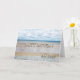 Una tarjeta que encantará a cualquiera. Una magnífica escena playera con letras de arena 3D reflejadas en el agua. Esta tarjeta le dará un toque de la playa tropical a una celebración de cumpleaños. Derechos de autor Norma Cornes.