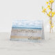 Una tarjeta que encantará a cualquiera. Una magnífica escena playera con letras de arena 3D reflejadas en el agua. Esta tarjeta le dará un toque de la playa tropical a una celebración de cumpleaños. Derechos de autor Norma Cornes.
