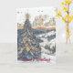 La tarjeta de navidades muestra una escena nevada vista desde lo alto de una colina, con un árbol de Navidad. Personalizar el saludo y el mensaje dentro de la tarjeta a tu gusto.