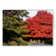 Un pino rojo y un arce rojo en llamas con un pequeño puente de piedra entre ellos crean una hermosa escena otoñal japonesa.