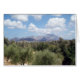Vista panorámica en Creta, Grecia con olivos y montañas como telón de fondo.
