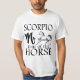 Diseño dinámico en blanco y negro, símbolo de horóscopo Scorpio, caballo en movimiento, para Scorpios nacidos en el Año del Caballo. El caballo gobierna cada doce años; los años de caballo incluyen 1918, 1930, 1942, 1954, 1966, 1978, 1990, 2002 y 2014. Los caballos son activos, imaginativos, románticos y carismáticos. Los Caballos de Escorpio son pensadores y triunfadores apasionados y complejos. No les gustan las rutinas y el protocolo frívolo, y pueden ser rebeldes si se les presiona. Pueden inclinarse hacia la escritura y las artes literarias, y tienden a ser bien leídos o conocedores de una gran variedad de temas.