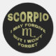 Grabado en tonos dorados, "Escorpio que puedo perdonar pero no olvidaré" con un símbolo. Un Escorpio puede ser tu mejor amigo o tu peor pesadilla. Son leales a una falta, pero no se olvidan -y tienden a pagar, tanto por el bien como por el mal hecho que se les hizo. Cualquiera que te vea usar estos pegatinas no puede alegar que no fueron advertidos.