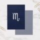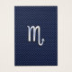 Un cromo como el símbolo Scorpio Zodiac en un fondo de impresión de textura de diseño de fibra de carbono azul marino. Un diseño de arte urbano moderno para una gran idea de regalo de cumpleaños personalizado. Utilice el vínculo "Preguntar a este diseñador" para contactarnos con sus solicitudes de diseño especiales o para obtener ayuda con sus necesidades de personalización.