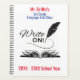 Este gran cuaderno está preparado como planificador para el año académico de un profesor - actualizar fácilmente el texto del titular del lugar en el frente. Presenta un bolígrafo de escritura a la antigua moda combinado con un libro abierto. La pegadiza frase dice "¡Escríbelo!"
