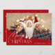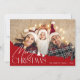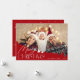 diseño moderno de tarjetas de fotos de navidad roja con imagen personalizado y escritura blanca.