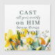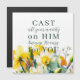 Este diseño presenta un patrón floral incluyendo el verso biblia 1 Peter 5:7.