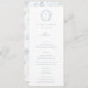 Monograma del Escudo de Regencia Vintage Dusty Blue, menú boda. Escudo de estilo barroco de inspiración vintage con tipografía azul coordinada. El elegante estilo Chinoiserie le da un toque floral al jardín.