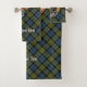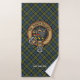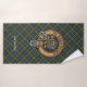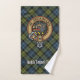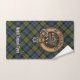 Insignia de Campbell escudo rodeada de una correa y hebilla sobre fondo tartán. Texto personalizado en cada toalla.