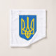 Escudo de armas patriótico ucraniano. Escudo de armas de Ucrania. Menos escudo de armas de Ucrania, el llamado Tryzub. Un símbolo de tridente estilizado en oro sobre un escudo de fondo azul.
