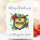 Esta elegante tarjeta de Navidad y Año Nuevo con tema policial presenta un distinguido escudo policial hermosamente adornado con poinsettias, ramas de abeto y bayas de acebo. Una tarjeta encantadora para familiares, amigos y compañeros de trabajo.