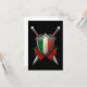 Este diseño único presenta la bandera de Italia como un escudo metalizado intrincado. Se cruzan dos espadas con crystal crystal crystal crants en las colinas detrás del escudo. En la base del diseño aparecen cuatro rosas rojas con hojas verdes que crean un hermoso contraste con el metalizado envejecido y gastado del escudo. La armadura está decorada con motivos de remolinos elaborados, así como con dos estrellas de cinco puntos en la parte superior del diseño. Los arañazos grandes y los colores metálicos le dan al patrón un aspecto envejecido y gastado. Este patrón medieval patriótico es una gran manera de mostrar tu orgullo italiano.