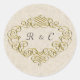 Este elegante sello para sobres redondo presenta una decoración dorada con un fondo beige ligeramente florido. Las iniciales monogramadas se pueden personalizar para que se ajusten a las necesidades - o se pueden eliminar por completo si se prefiere.