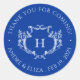Elegante Boda De Monograma Floral Gracias Pegatinas. Original monogramado enmarcado por una elegante mano ilustrada escudo vintage en azul real, sencillo pero sofisticado. La elección perfecta para los bodas modernos, clásicos y sencillos.