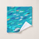 Toalla colocada en una escuela de pescado en un océano turquesa en tonos azules, verdes, dorados y blancos