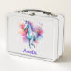 Este diseño único cuenta con un hermoso ilustracion acuático de un unicornio mágico. Se puede personalizar fácilmente agregando el nombre de tu pequeña niña. Hay un tipo de letra de guión elegante y fácil de leer para hacer este elemento verdaderamente especial y único. La imagen muestra un unicornio en los colores del arcoiris, haciendo especial hincapié en el rosa y el púrpura. Este producto es parte de una colección de accesorios para niñas pequeñas, a las que les encantan los unicornios mágicos y los arcos. Esta colección fue creada para hacer que la compra de los accesorios de la escuela sea fácil y agradable.