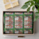 Este producto tiene un diseño con Merry Elves envolviendo un presente. Este es un diseño vintage con los elfos envolviendo alegremente un gran regalo de Navidad. A esto se suma una combinación moderna con el fondo verde de copo de nieve.