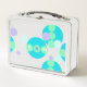 Diseño original y acogedor con burbujas turquesas en la caja del almuerzo para personalizar de hasta 3 letras de nombre.
