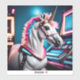 Espacio rosa retro Unicornio Pegatina de cumpleaño