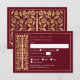 Celebra tu día especial con estas Tarjetas de RSVP de Boda de Espada Medieval Real sobre un fondo rojo. Puedes personalizar esto aún más haciendo clic en el botón "PERSONALIZAR". TEN EN CUENTA: El dorado en este artículo NO es de lámina real y se imprime en colores planos