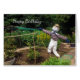 Curioso espantapájaros sonrientes en una asignación. El texto del cumpleaños feliz puede ser editado para adaptarse a cualquier ocasión o nombre.