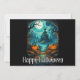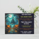 Esta invitación a la fiesta de Halloween muestra el ilustracion de una mansión embrujada. Esta invitación creativa y festiva se puede editar fácilmente para mostrar cuándo, dónde y un breve resumen de los detalles de la fiesta de Halloween que puedes ajustar para hacer esta tarjeta bastante personal.