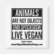 ¡Lleve el claro mensaje vegano de que los animales NO son objetos con esta gran conversación de inicio del South Florida Vegan Education Group! En una sociedad que objetiviza, explota y trata a los individuos no humanos como una propiedad desechable y reemplazable, depende de cada uno de nosotros desafiar el status quo y desmantelar el especialismo a través de una educación vegana inequívoca. Ablazado con mensajes claros y directos, este diseño audaz y que invita a la reflexión -junto con la dirección del sitio web de SFVEG para más información- trae las ideas del veganismo y los derechos de los animales a cualquier lugar donde se vea. ¡Muéstralo con orgullo y empieza a cambiar el mundo de una conversación a la vez!