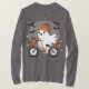 Una camisa divertida y espeluznante con un personalizado fantasma sonriente montando una bicicleta con una luna llena en el fondo. Ideal para Halloween o cualquier día del año. Esta camisa cómoda y elegante es perfecta para hacer trucos o cualquier otra actividad de Halloween. El diseño lúdico será un éxito tanto para los niños como para los adultos. Lo que se debe tener para cualquier fanático de los fantasmas, las bicicletas o simplemente diversión. Esta camisa es a la vez espeluznante y adorable.