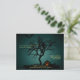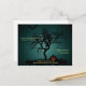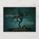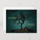 Postcard es una impresionante invitación a la fiesta de Halloween que muestra un árbol sin hojas, un murciélago negro volador y una calabaza naranja brillante debajo del árbol. El fondo es verde, el gris angustiado. Crea un ánimo espeluznante y espeluznante con esta invitación. El texto es personalizable. Personalízalo para convertirlo en tu propio.