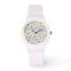 Un reloj de pulsera deportivo de bonito, con un patrón de maricones blancos en un fondo azul cielo. Este patrón se ajustará a todos los tamaños de reloj de pulsera. Parte de la colección "Daisy Chain" de Posh & Painterly.