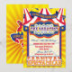 Espectaculares invitaciones de cumpleaños. Invitación tradicional a la fiesta de carnaval con carpa, carnaval, carnaval de fondo y caballo de carrusel en la parte trasera. Para mayor coordinación de los suministros de fiesta de carnaval, por favor visite MetroEvents en Zazzle. Para diseños personalizados, póngase en contacto con Metro-Event.com.