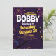 Establezca el escenario para una celebración inolvidable con nuestra "Invitación a la fiesta de cumpleaños de los niños con el tema mágico de Golden Stardust". Diseñada especialmente para jóvenes ilusionistas, esta tarjeta de cumpleaños marca el tono de un día lleno de maravillas, risas y sorpresas mágicas. Sumérgete en el rico fondo violeta que refleja el encanto místico de una noche mágica. El diseño deslumbra con una salpicadura de estrellas doradas y amarillas que cuelgan por toda la tarjeta, creando una atmósfera de encanto y anticipación. Es como si las estrellas invitaran a sus pequeños invitados a un día mágico. Cada detalle de esta tarjeta de cumpleaños está meticulosamente diseñado para captar la emoción de un fiesta de temática mágica. Personalice la tarjeta con el nombre, edad y detalles del fiesta de su hijo. También hay espacio para agregar la información de RSVP, facilitando la planificación y administración de su evento especial. Nuestra "Invitación a la fiesta de cumpleaños de niños con el tema mágico de la historia dorada de Stardust" es más que una simple carta; es el acto de apertura a un día de magia, emoción y recuerdos que durará toda una vida. Ignora la chispa de la magia en la celebración del cumpleaños de tu pequeña con esta encantadora tarjeta de invitación.