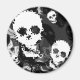 Cuidado con los espectros del cráneo. Cuando los fantasmas cráneos aparecen de la niebla giratoria es mejor que corras... ¡antes de que sea demasiado tarde! Nevera imán con un diseño de personalizable en blanco y negro para que añadas tus propias imágenes, textos e ideas. Obra de arte original creada con técnicas digitales por Jess Perry.
