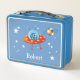 Para el amante de todas las cosas extraterrestres y OVNIs, un lindo ilustracion personalizado de un alien volando alrededor del universo en una nave espacial, con un planeta y estrellas en el fondo. Personalizar el texto para el nombre de su propio ser extraterrestre.