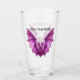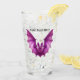 Este vaso de vidrio para las bebidas tiene un murciélago peludo espeluznante de color rosa vibrante con sus alas esparcidas en vuelo. Personalizar el texto en la parte delantera y posterior con las plantillas.