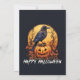 Esta invitación a la fiesta de Halloween muestra el ilustracion de un cuervo negro encaramado. Esta invitación festiva puede ser fácilmente editada para mostrar cuando, dónde y una breve lista de detalles de los bash de Halloween que usted puede ajustar para hacer esta carta bastante personal.