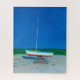 Una pintura de un solo velero en un astillero en un día de primavera tardía con un cielo azul profundo en el fondo. La obra de arte trata sobre esperar el comienzo del verano en Nueva Inglaterra y la diversión en el agua que conlleva vivir en una ciudad costera.