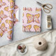 La inspiradora palabra "amor" aparece sobre las alas de una mariposa rosa. Los suaves colores naranjas de la mariposa se complementan con corazones amarillos y rosas. Este papel de envoltura de mariposa de bonito es perfecto para cualquier ocasión de regalo.