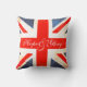 Una almohada de la bandera del Reino Unido con un estilo antiguo único en tonos rojos, blancos y azules. Con el lema Esperanza y Gloria. Diseñado con el jack de unión, bandera de Gran Bretaña y un pequeño tratamiento vintage. Producido por Sarah Trett. Se vería genial en un dormitorio o salón patriótico.