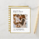 ¿Quién dice que la calidad no es barata? ¡Seguro que no! Es por eso que hicimos estas tarjetas fotográficas de vacaciones económicas. Este diseño presenta una hermosa foto personalizado en el centro con una preciosa tipografía arriba y abajo. En la parte superior se puede leer "los mejores deseos de esperanza y alegría en el nuevo año" con elegantes letras negras y delicado guión de oro. Debajo de la foto está el nombre de su familia con sus nombres individuales debajo. En torno a todo el diseño se ha colocado un delicado borde dorado que le confiere un aspecto aún más lujoso.