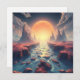 Un hermoso paisaje surrealista con una gran luna llena que se eleva sobre un río azul bonito. Ai arte que representa un hermoso paisaje de otro mundo con una calidad de ensueño. Le deseo a alguien un día mágico.