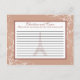 Estas adorables Tarjetas de Consejos Escritos son la adición perfecta a cualquier Boda. Simplemente entregue estas tarjetas a sus huéspedes, junto con bolígrafos Sharpie de punta fina. Sus invitados pueden anotar cualquier consejo que tengan para la nueva novia y el novio. Estos se imprimen en un tamaño de 4,25" x 5,6" en un material de cubierta ultradelgado de 120 libras (material de tarjeta). Tenemos una línea entera dedicada a este diseño aquí en nuestra tienda zazzle bajo la pestaña *Ver por BODA de COLECCIÓN del menú para incluir invitaciones (5x7), etiquetas de retorno, etiquetas de correo, Sellos para sobres, sellos de postaje, tazas de copas, envolturas de botellas de agua, 1,55 oz de Hershey. Envolturas para barra grande, Pegatinas en miniatura de Hershey, Envolturas para bolsitas de palomitas de microondas, Tarjetas para lugares escribibles, Toppers para bolsitas de goody, Tarjetas de agradecimiento FLAT (4x5), Tarjetas de agradecimiento FOLDED (4x5), Etiquetas de favoritos, Tarjetas de menú, libros de papel, Tapas de ligas, Tarjeta de bingo Marcadores, Hojas de llamadas con tarjeta de bingo, tarjetas de consejo para escritura (4x5), etc.