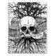 Un fabuloso collage digital con cráneo, árbol espeluznante, libros antiguos y un poema.