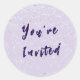 Selle sus sobres con un toque nevado y brillante usando este pegatina "Estás invitado" de la colección Baby Flurry. Ideal para las invitaciones violetas, añade encanto y coordinación a la papelería de invierno con ducha de bebé. Añada el detalle final a las invitaciones de ducha de bebé con este sello para sobres festivo "Estás invitado". Diseñado en un fondo púrpura pálido con un juego purpurina-nieve, este pegatina redondo se mezcla sin esfuerzo con la colección Baby Flurry. Es práctico y elegante, lo que le da a sus invitaciones un aspecto profesional y refinado. Perfecto para: invitaciones a una ducha de bebé, tarjetas de agradecimiento y favores de fiesta. Tema: Bebé Flurry, ducha de bebé de invierno, chispa de copo de nieve. Estilo: púrpura pálido con un divertido efecto purpurina-nieve. Coordenadas con: Invitaciones, carteles de bienvenida, servilletas, platos, tazas y más del set de Baby Flurry. Completa el look con nuestra colección completa de fiestas Baby Flurry, desde invitaciones hasta vajilla, para una celebración perfectamente coordinada.