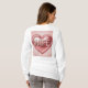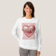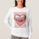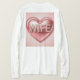Esta camiseta tiene forma metálica de corazón rosado. La palabra "WIFE" se centra en ella con pequeñas flores rosadas de bonito en cada letra. El fondo es un gradiente metálico rosado que refleja un resplandor suave. La camiseta es una camiseta básica blanca de manga larga. La camiseta está hecha con 100% de algodón.