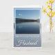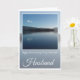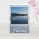 Esposo del aniversario. Loch azul contra cielo azul claro, colinas en el fondo y reflejos celestes en Loch Lomond, Escocia. El texto dice: Feliz aniversario a mi maravilloso marido. La tarjeta interior está en blanco.
