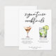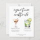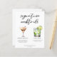 Esta carta de cócteles de moda destaca por su sencilla tiopgrafía negra de más de 2 bebidas y sus ingredientes para su bar boda. Un espresso martini y un dibujo de gin y tonic añaden un toque fresco a la hoja de menú de la barra. Con los nombres de la pareja y la fecha de recepción.